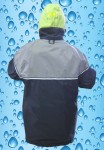 - Florescent colored hood folds into collar has side adjustment
